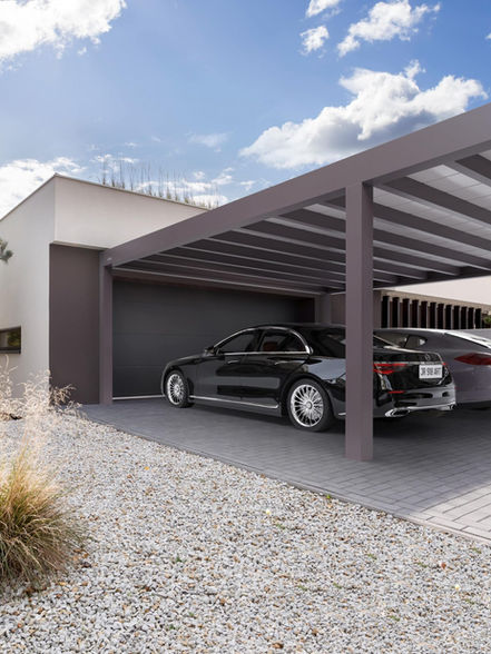 Carport bietet Schutz vor Regen, Schnee, Hagel und Sonne. Dadurch ist das Fahrzeug keinen durch atmosphärische Faktoren verursachten Schäden wie Korrosion, ausbleichendem Lack oder mechanischen Schäden durch Hagel ausgesetzt.