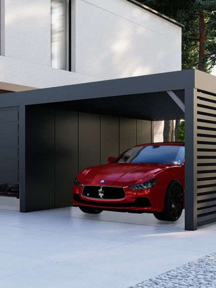 Carport hat ein attraktives Erscheinungsbild, das zu verschiedenen Architekturstilen passt. Dies ist eine Lösung, die nicht nur das Auto schützt, sondern auch dem Außenbereich Ästhetik verleiht.