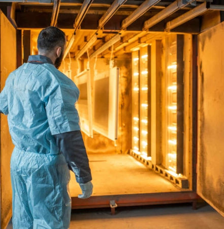Nach dem Auftragen des Pulvers wird das Objekt in einen speziellen Ofen transportiert, wo es dem Prozess der Pulverlackaushärtung unterzogen wird. Bei hohen Temperaturen schmilzt und härtet das Pulver aus, wodurch eine dauerhafte Schutzschicht entsteht.